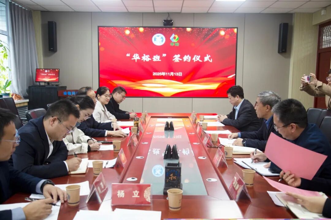 11月13日,華裕農(nóng)業(yè)科技有限公司董事長王連增一行7人,專程奔赴河北農(nóng)業(yè)大學(xué),與動物科技學(xué)院黨委書記楊彥華等學(xué)院領(lǐng)導(dǎo)齊聚一堂,共同推進第六期“華裕班”建設(shè),為深化產(chǎn)教融合、培養(yǎng)農(nóng)業(yè)領(lǐng)域高素質(zhì)人才再添新動力。